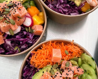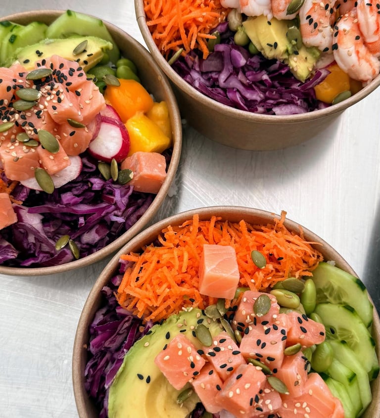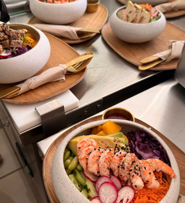 Savourez nos poke bowls frais et colorés, préparés avec des ingrédients de qualité.