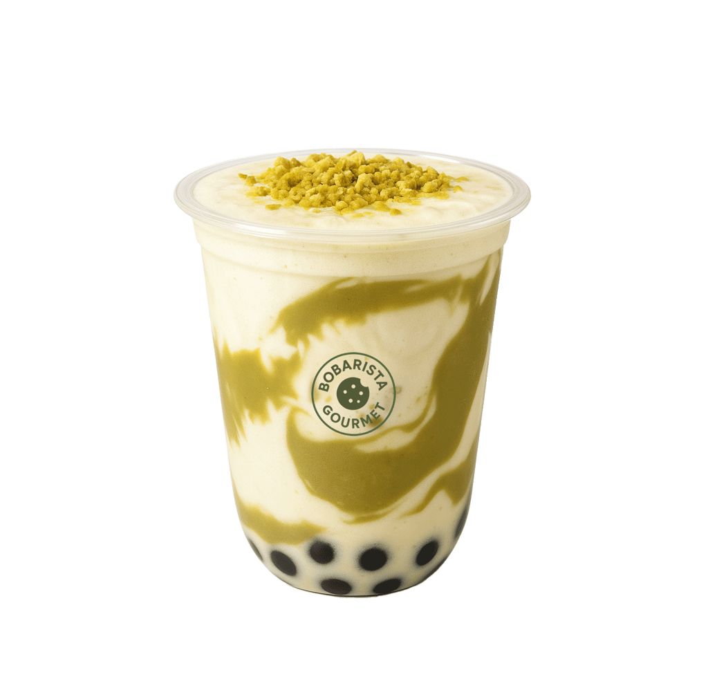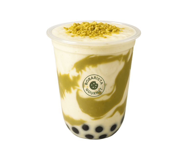 Thé Oolong, lait crémeux, pâte de pistache et éclats de pistache