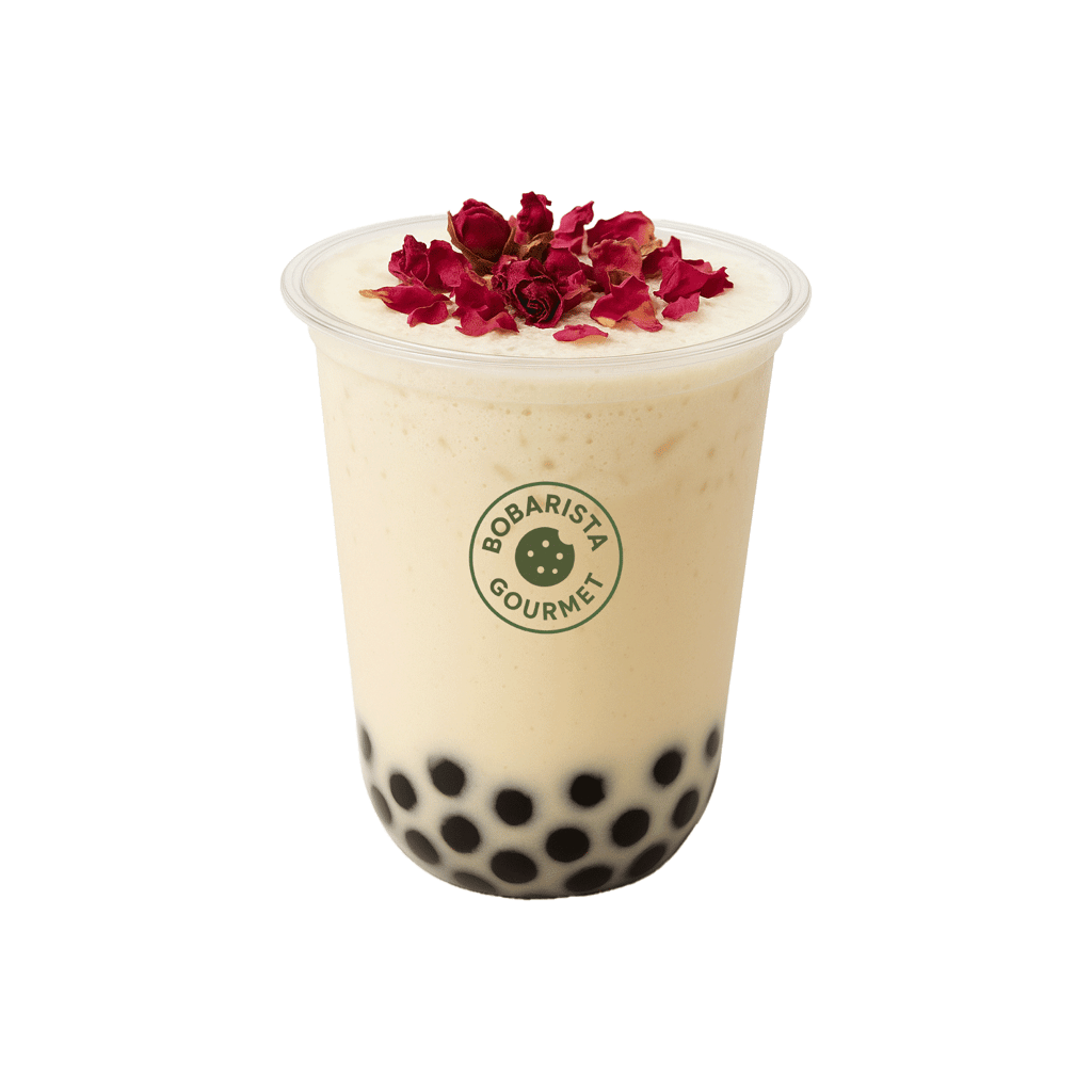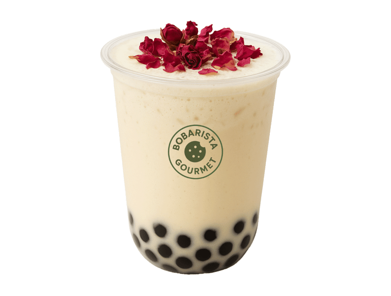 Thé Oolong, lait crémeux, litchi, rose et pétales de fleurs