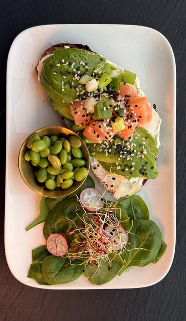 Chaque samedi et dimanche en décembre, Bobarista Gourmet vous propose un brunch maison au cœur de Narbonne. Découvrez nos tartines gourmandes au pain de campagne toasté, préparées avec des ingrédients frais : avocat, cream cheese, saumon, mangue ou encore pistache bio.