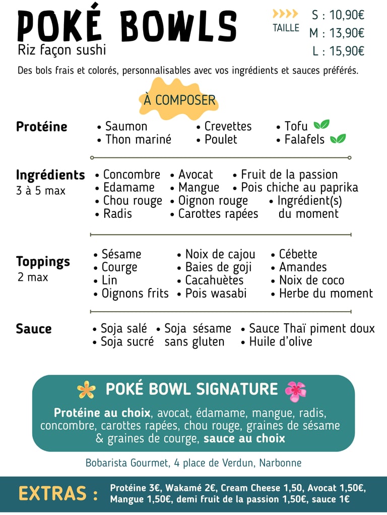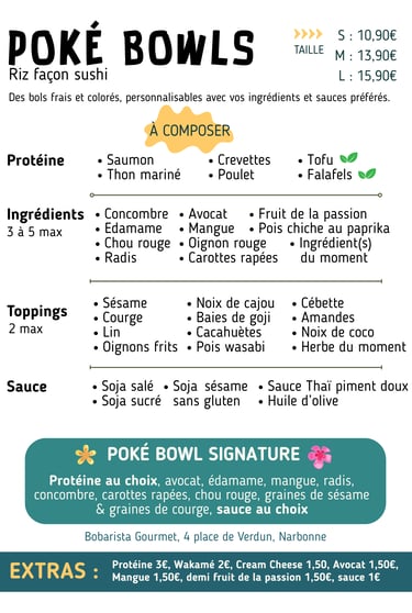 Profitez d'une expérience gourmande avec nos poke bowls, bubble tea et pâtisseries dans une ambiance cosy.